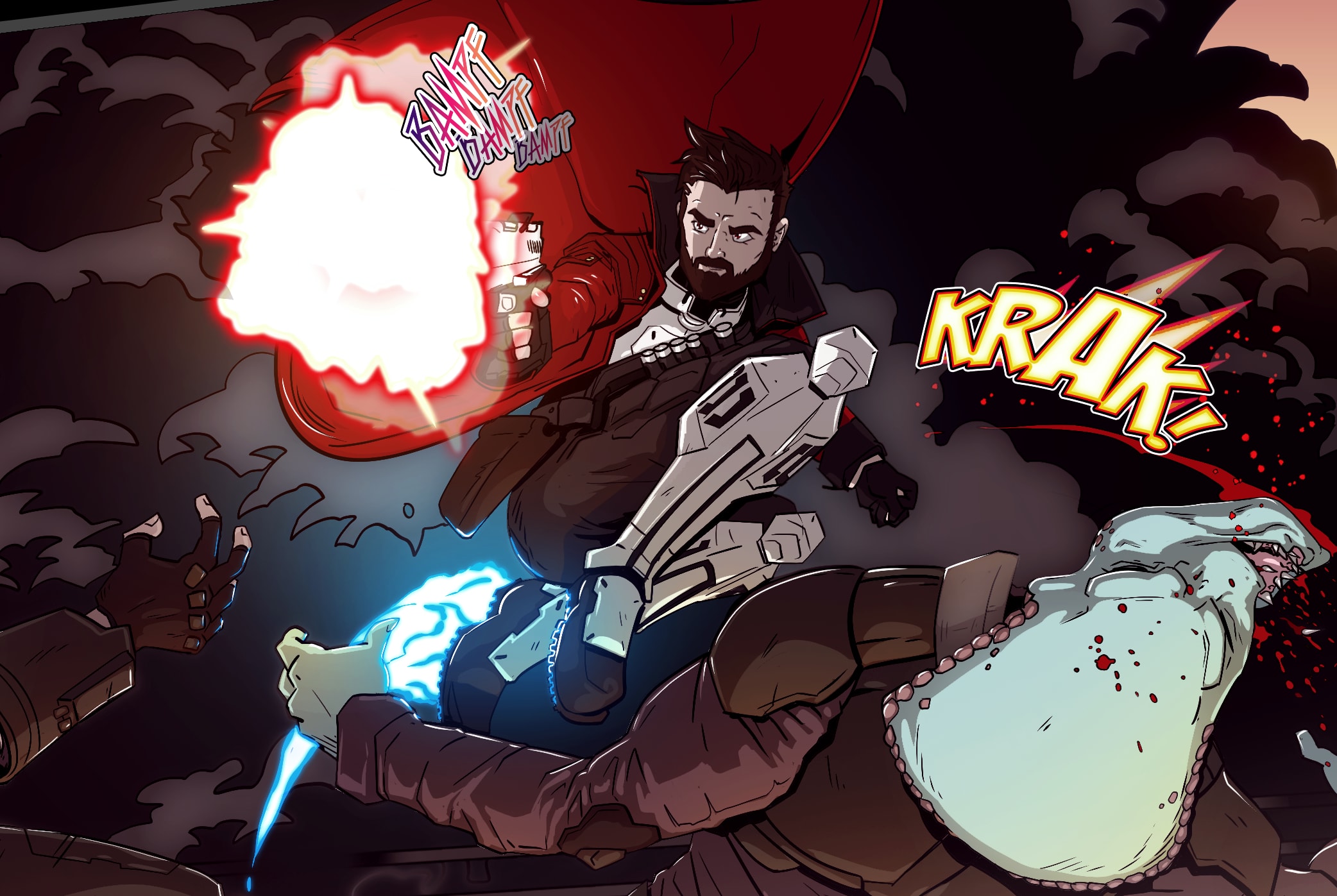 Follow Reggie Bloodletter and Glitch as they become infamous bounty hunters and face off against the galaxy's deadliest criminals. From giant evil snakes, corrupt law enforcers, deadly adware AI, slippery alien gangsters, and more than one surprise that will test their moral beliefs, the true nature of their partnership, and the implications of their existence within the galaxy.